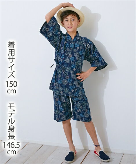 甚平 キッズ スーツ 男の子 ベビー 服 子供服 ジュニア服 打上花火 縞麻柄 紺 縞麻柄 /紺 打上花火 身長80〜130cm ニッセン