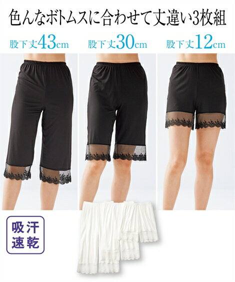 ランジェリー レディース 吸汗速乾 丈違い ペチパンツ 3枚組 夏 オフホワイト/黒 LL/3L ニッセン