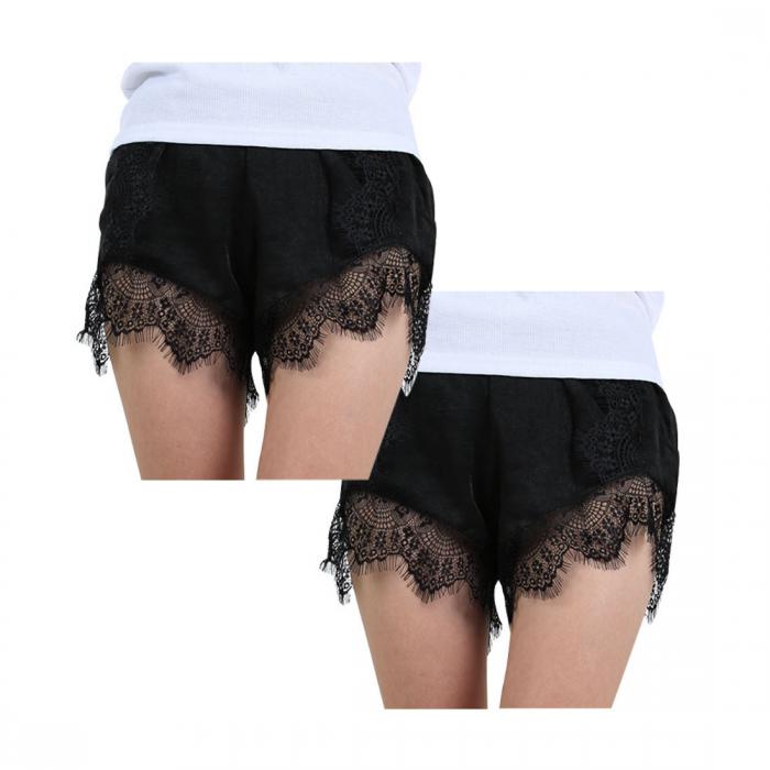 ペチパンツ レース オーバーパンツ ショートパンツ みせぱん 見せパン みせぱん黒 みせぱんくろ 見せパンツ タンパン インナー 大きいサイズ アウターに響かない ひびかない 短パン 黒ぱんつ くろパン くろパンツ(ブラック, L-LL)
