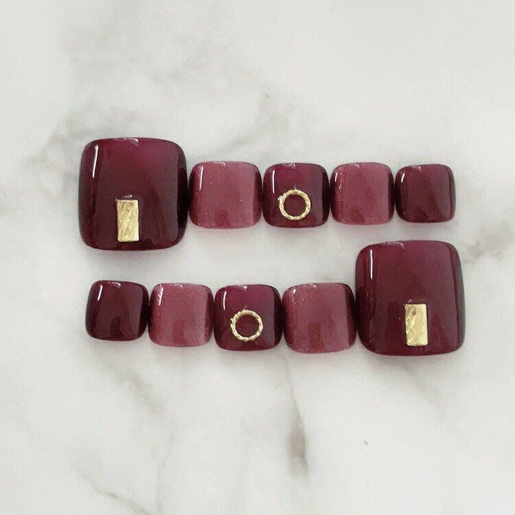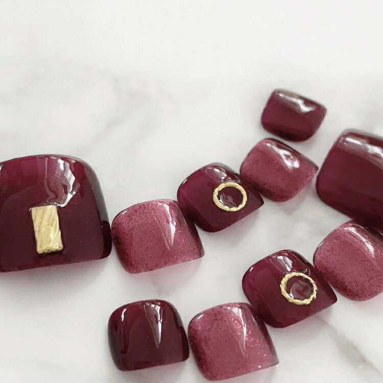 フットネイル ネイルチップ ペディチップ 足用ネイルチップサイズが選べるペディキュアつけ爪ジェルネイルでワンランク上のチップを是非!夏ネイル 花火大会や浴衣 旅行やビーチに!人気ネイル トレンドネイル●グロスボルドーレッド×ラメスタッズ