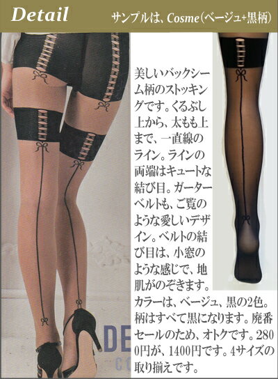 【メール便OK】[インポート・柄ストッキング/イタリア製]バックシーム柄+ガーター風デザイントラスパレンツェ/デルカス